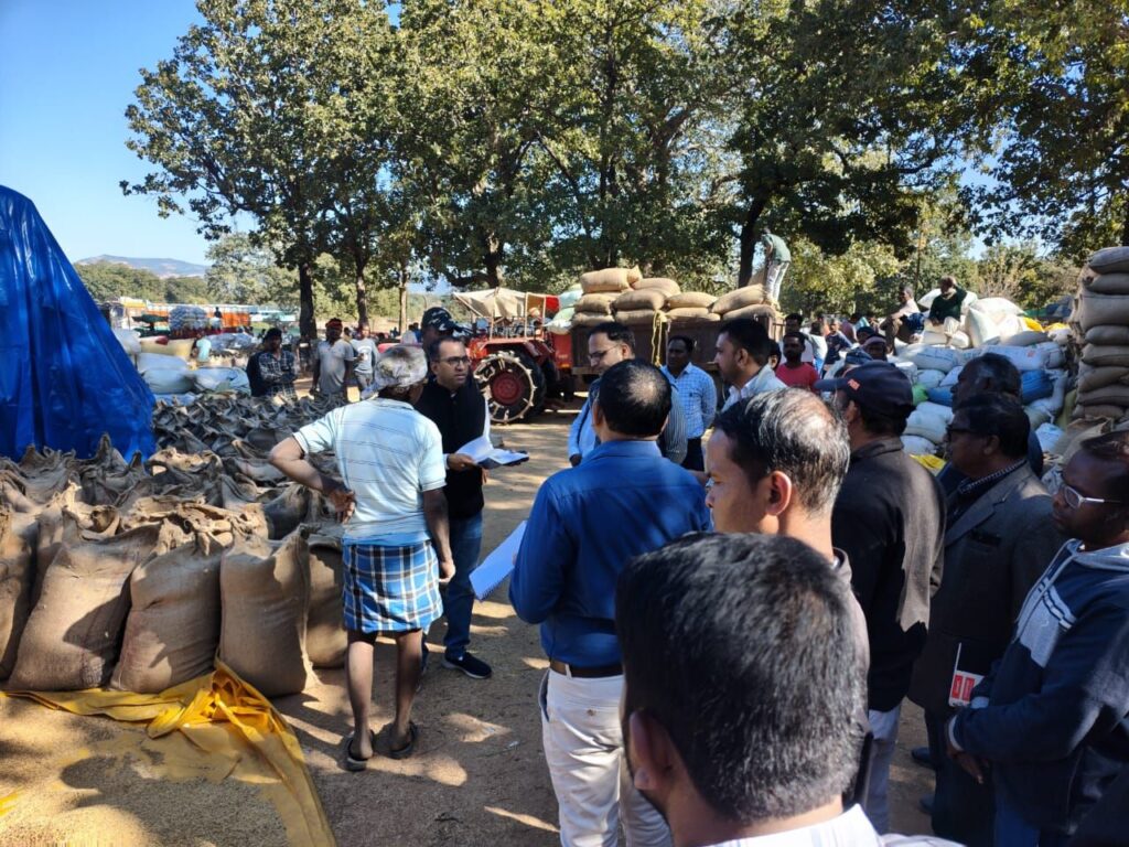 धान खरीदी केंद्र व्यवस्था का जायजा लेने गेरसा उपार्जन केंद्र पहुंचे कलेक्टर-