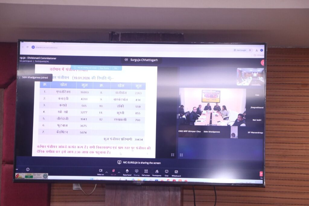 सरगुजा ओलम्पिक 2026 की तैयारियों की समीक्षा, आयुक्त सरगुजा संभाग की अध्यक्षता में हुई वीडियो कॉन्फ्रेंस
