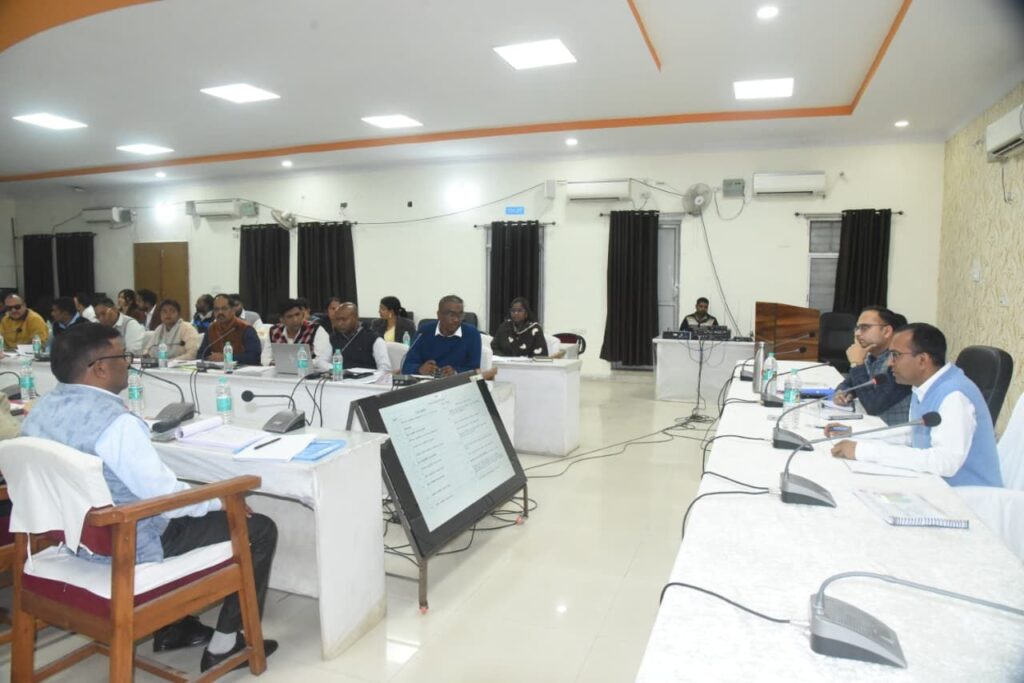 अंबिकापुर 07 फरवरी 2026/ कलेक्टर श्री अजीत वसंत ने शनिवार को जिला पंचायत सभाकक्ष में स्वास्थ्य विभाग की समीक्षा बैठक ली। बैठक में स्वास्थ्य विभाग अंतर्गत संचालित योजनाओं एवं कार्यक्रमों की समीक्षा कर आवश्यक दिशा-निर्देश दिए गए। उन्होंने कहा कि अधिकारी कार्यक्षेत्र में नियमित निरीक्षण करें और समस्याओं का समय पर समाधान सुनिश्चित करें। इस दौरान आयुष विभाग द्वारा जारी कार्यक्रमों पर भी विस्तारपूर्वक चर्चा की गई। बैठक में मुख्य चिकित्सा एवं स्वास्थ्य अधिकारी डॉ पी. एस. मार्को, राष्ट्रीय कार्यक्रमों के नोडल अधिकारी, बीएमओ, डीपीएम, बीपीएम तथा सर्वसम्बन्धित उपस्थित रहे।