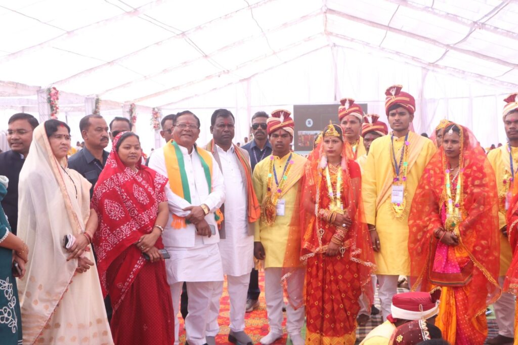 सूरजपुर/10 फरवरी 2026/ मुख्यमंत्री श्री विष्णु देव साय की वर्चुअल उपस्थिति एवं पूर्व गृह मंत्री एवं वन विकास निगम के अध्यक्ष श्री राम सेवक पैकरा के मुख्य आतिथ्य में आज सूरजपुर जिले में हिंदू, मुस्लिम एवं ईसाई समाज के 250 जोड़ों का मुख्यमंत्री कन्या विवाह समारोह भव्य रूप से संपन्न हुआ। कार्यक्रम में विधायक श्री भूलन सिंह मरावी, जिला पंचायत अध्यक्ष श्रीमती चंद्रमणि पैकरा, जनपद अध्यक्ष श्रीमती स्वाती संत सिंह, कलेक्टर श्री एस जयवर्धन, जिला पंचायत सीईओ श्री विजेंद्र सिंह पाटले एवं अन्य जनप्रतिनिधि, अधिकारीगण एवं गणमान्य नागरिक उपस्थित थे।