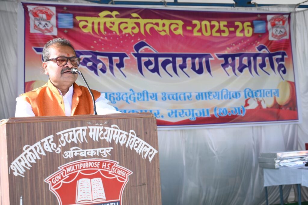 अंबिकापुर/12/02/2026/ शहर के प्रतिष्ठित एवं 112 वर्ष पूर्ण कर चुके प्राचीनतम विद्यालय शासकीय बहुउद्देशीय उत्तर माध्यमिक विद्यालय अंबिकापुर में 11 फरवरी 2026 को वार्षिक उत्सव एवं पुरस्कार वितरण समारोह बड़े उत्साह और जोश के साथ मनाया गया l सांस्कृतिक कार्यक्रमों की प्रस्तुति ने मंच पर इन्द्रधनुष के रंगों की छटा बिखेरी l मुख्य अतिथि अभिमन्यु गुप्ता (अध्यक्ष SMDC ) , विकास पाण्डेय जी (सचिव SMDC ), रूपेश दुबे , संजीव वर्मा , सुश्री बबली नेताम, श्रीमती सीमा कश्यप की उपस्थिति से स्कूल गौरवांवित हुआ l इस अवसर पर अभिवावक और छात्र छात्राएँ उपस्थित रहे l मुख्य अतिथि के आगमन पर छात्राओं द्वारा तिलक एवं पुष्प वर्षा करते हुए अतिथियों का अभिवादन किया गया l दीप प्रज्ज्वलित करके कार्यक्रम का शुभारम्भ हुआ l इस के बाद  स्वागत नृत्य प्रस्तुत किये गए।