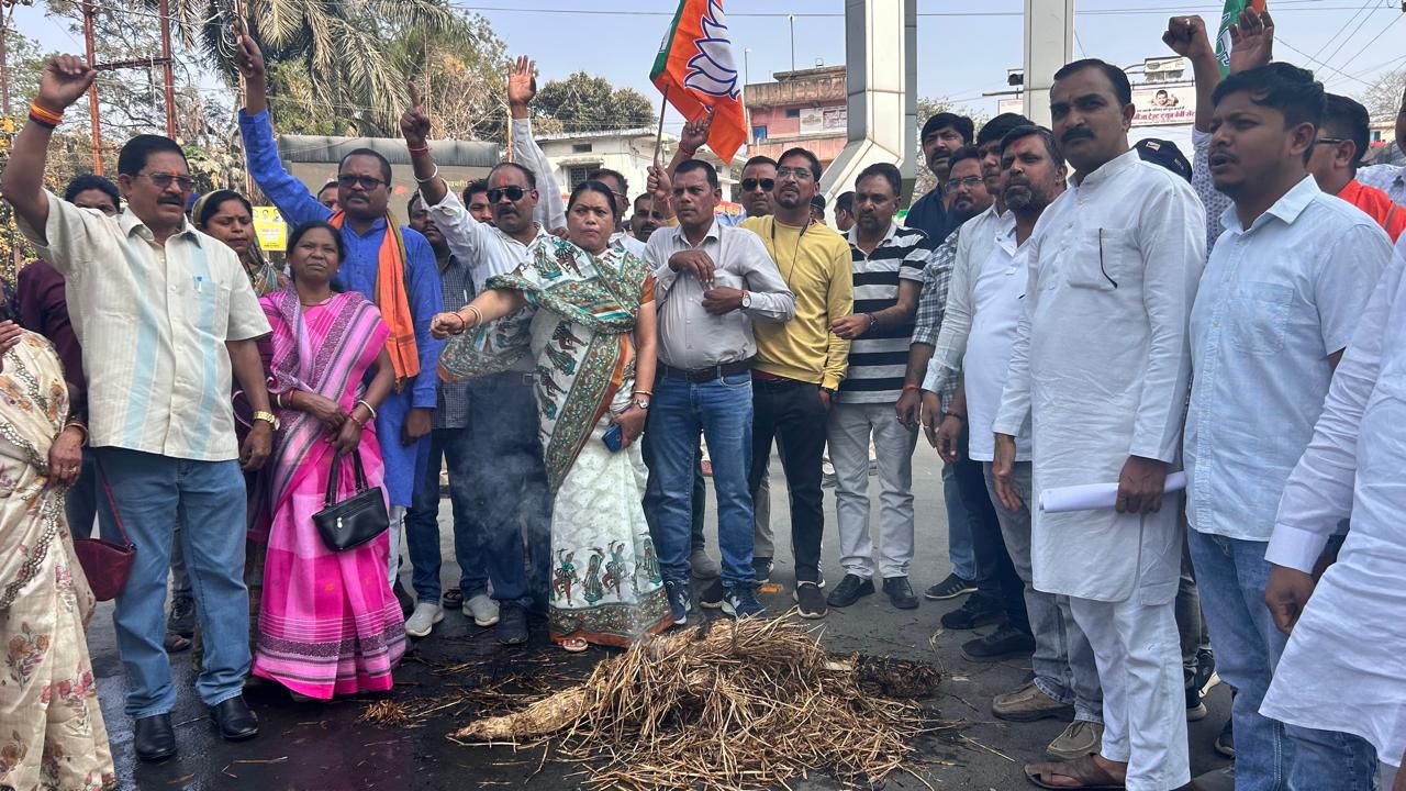 भाजपा सरगुजा अनुसूचित जनजाति मोर्चा एवं आदिवासी समाज के लोगों ने राष्ट्रपति द्रौपदी मुर्मू का अपमान करने का आरोप लगाते हुए स्थानीय घड़ी चौक पर ममता बनर्जी का पुतला दहन कर विरोध जताया। अजजा मोर्चा भाजपा सरगुजा के जिलाध्यक्ष बिंदेश्वरी पैकरा के नेतृत्व  एवं भाजपा जिला महामंत्री विनोद हर्ष की उपस्थिति में बड़ी संख्या में भाजपा कार्यकर्ता, पदाधिकारी एवं जनजाति समाज के लोग घड़ी चौक पहुंचे, जहां उन्होंने बंगाल की मुख्यमंत्री ममता बनर्जी के खिलाफ जमकर नारेबाजी की।