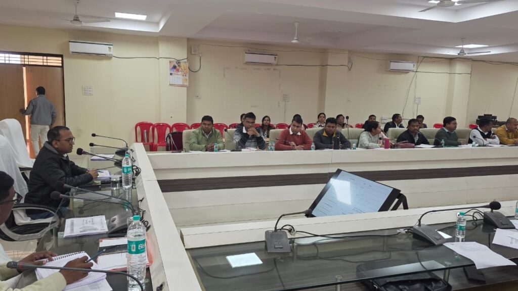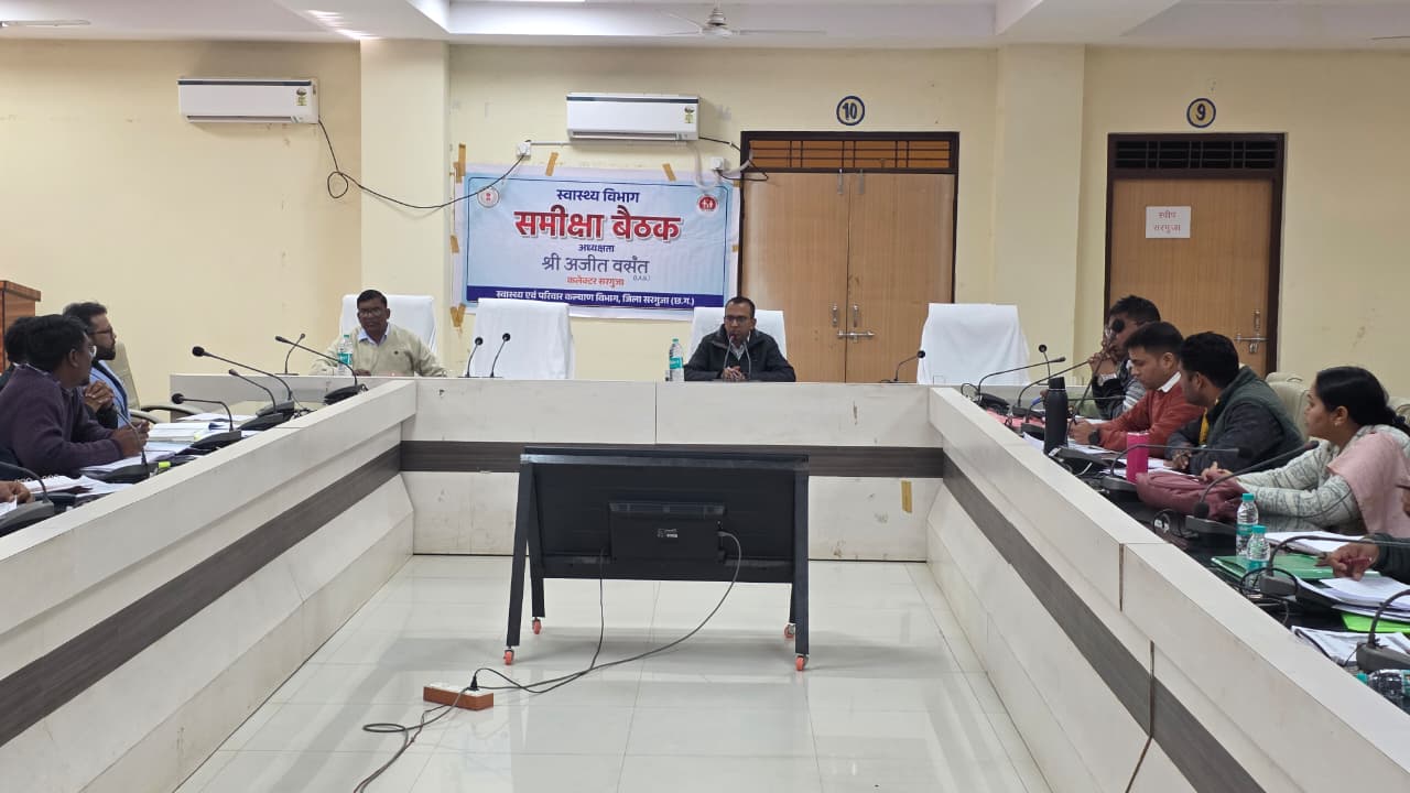 अंबिकापुर 27 दिसंबर 2025/ कलेक्टर श्री अजीत वसंत ने शनिवार को जिला कलेक्टरेट सभाकक्ष में स्वास्थ्य विभाग की समीक्षा बैठक ली। बैठक में स्वास्थ्य विभाग अंतर्गत संचालित योजनाओं एवं कार्यक्रमों की समीक्षा करते हुए उन्होंने आवश्यक दिशा-निर्देश दिए। उन्होंने स्वास्थ्य सेवाओं को आमजन तक सुलभ बनाने निर्देशित करते हुए विभाग को अपने दायित्वों का ईमानदारी के साथ निर्वहन करने कहा। उन्होंने समीक्षा के दौरान कहा कि आमजनों को बेहतर स्वास्थ्य सुविधाएं उपलब्ध कराना हमारी प्राथमिकता है। बैठक में मुख्य चिकित्सा एवं स्वास्थ्य अधिकारी डॉ पी. एस. मार्को, सहित राष्ट्रीय कार्यक्रमों के नोडल अधिकारी, बीएमओ, डीपीएम, बीपीएम तथा सर्वसम्बन्धित उपस्थित रहे।